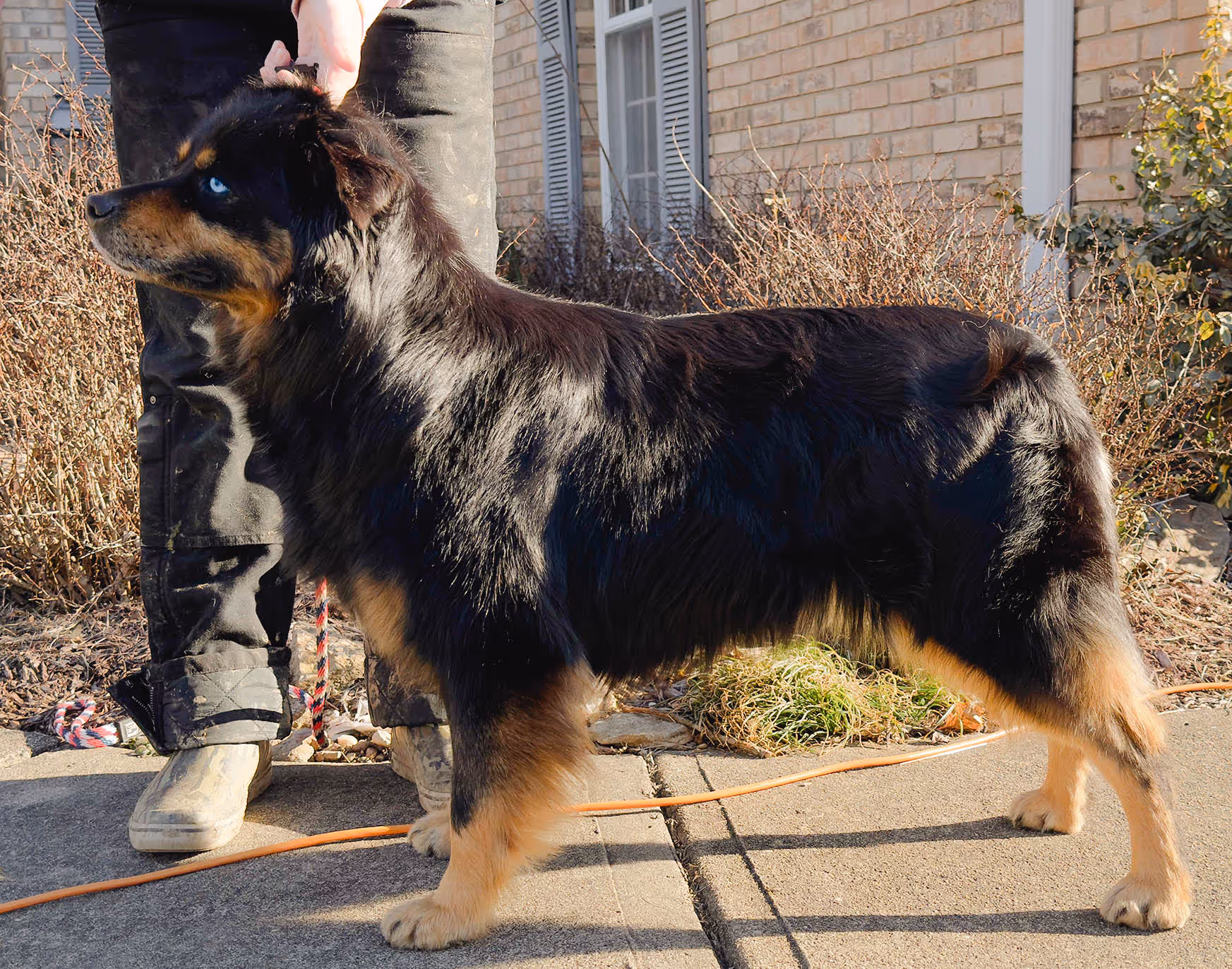 Ali is the “old soul” of our group. She is calm, quiet, and peaceful. She is very neutral when it comes to dogs and people, and really only cares for her person. She is the ‘mediator’ when it comes to disputes in the group, and is able to give fair corrections. She is very ‘soft’ and requires a gentle hand when training, but is happy to engage and be involved. She has a high food motivation, and low toy motivation. She loves a good treat in the sun to relax. She is the perfect companion when it comes to just relaxing in the home. She is not destructive, never complains, and requires very little from me to keep her happy. Her perfect day would be to sit on the back porch with me on a sunny afternoon. Overall Ali is a low-medium energy, low toy drive, medium-high food drive, with a second to none off switch.