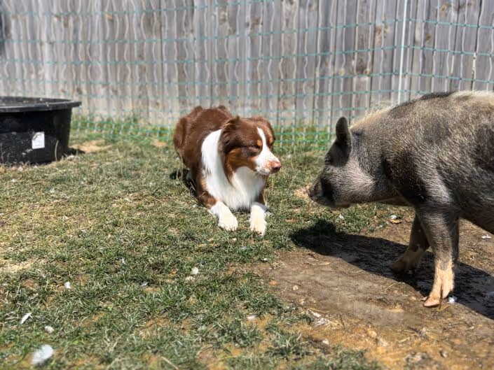 Aubrey is an honest, hard-working, and loving dog. He follows any rules laid out for him, and knows what is expected of him. He loves with his whole heart and wants anyone and everyone to be his friend. He listens to every instruction and is a “soft” dog when it comes to corrections. He is very very food motivated and mildly toy motivated (mostly loves to chase toys like flirt toys etc, and fetch, isn't really a ‘tug’ player). He is a calm defender, and will bark should someone come to the home, but he is a gentle giant and will calm quickly when asked. He is owner focused and will disregard others should his people be around. He is a joy to have in the home, and has an amazing off switch. He is calm and easily managed even when we have females in season in the home as well. He is my full time Service dog and has been trained in cardiac alert and response (scent detection), mobility tasks, and balance. He has been a therapy dog at our local children's hospital heart camp, and loves to see all the kids! Overall Aubrey is a medium energy, medium toy drive, high food drive, with an amazing off switch.