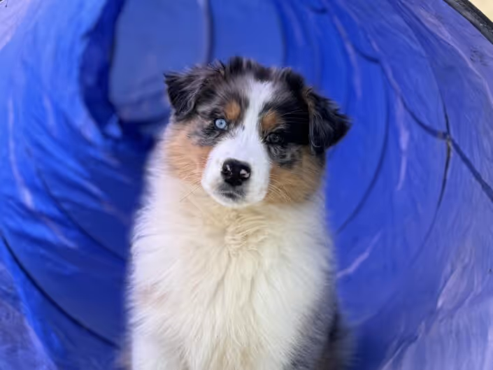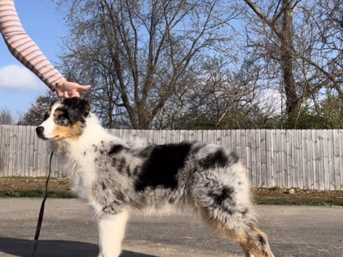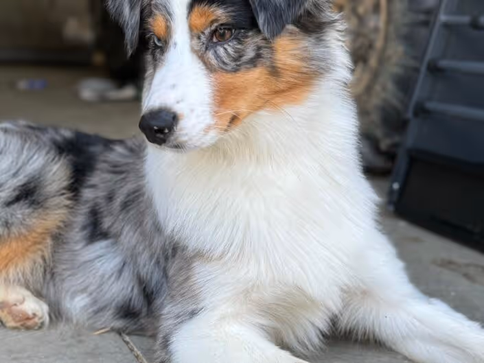 Lyra is a fun, happy-go-lucky, female. She gives everything into a task at hand and will try every way to get the job done. She shows affection with her whole body, and will smother you with kisses and hugs. She is a hard worker, and easily trained. I would call her a ‘mild’ dog when it comes to corrections, being that she takes a correction in stride, but too hard of a correction and she may take a second to rethink her next move. She has a high sense of self-preservation. She has a high food motivation, and a very high toy motivation. Her favorite game is working for her tug toy, but she is more than happy to train/work for treats. She loves meeting new people, and would trade me for the person holding her toy. She is very easy to live with, and requires little to keep her happy. She loves to swim, hike, do the farm chores with me, and simply just hang out. Overall lyra is medium energy, high toy drive, high food drive, with a great off switch.