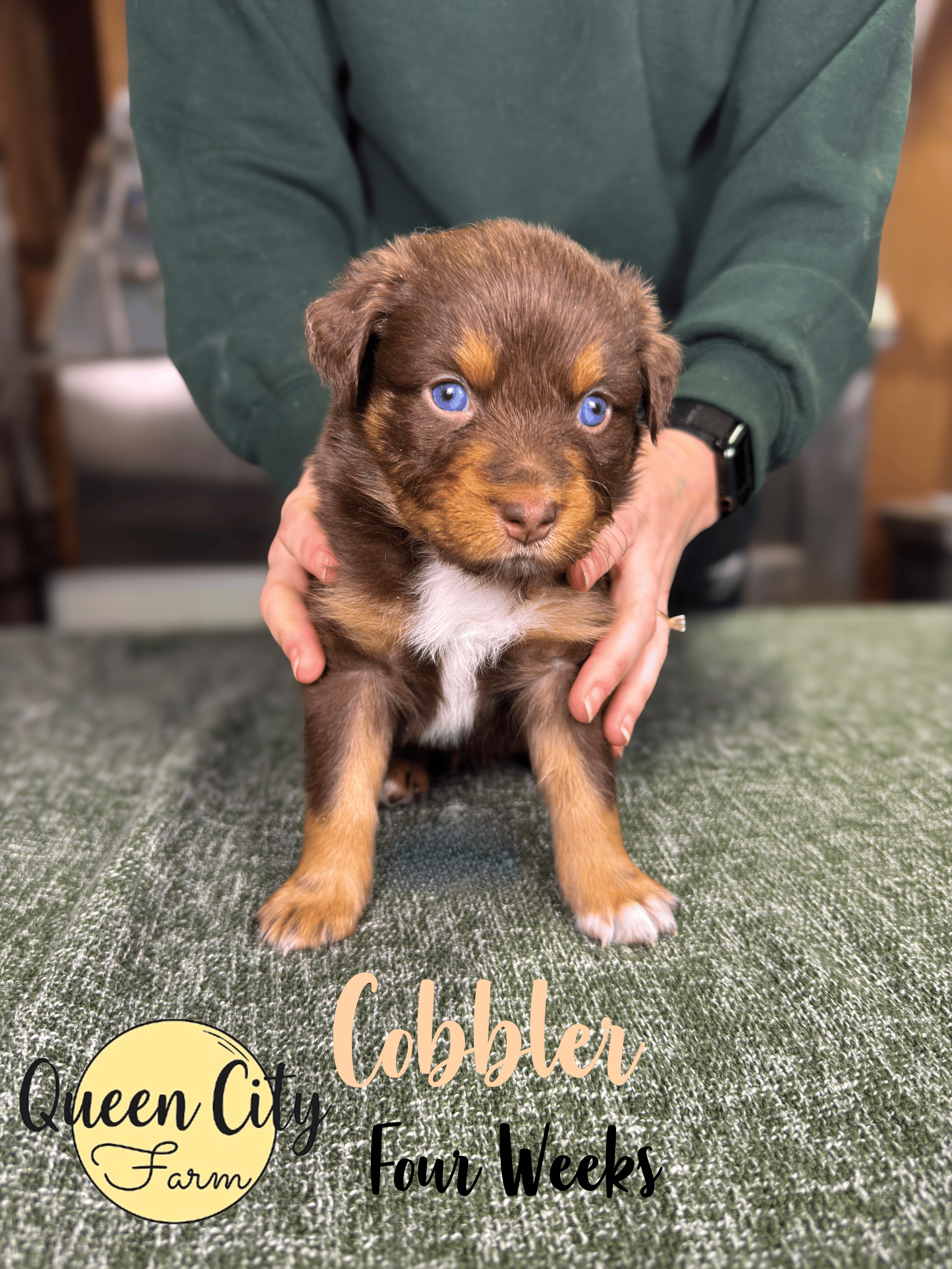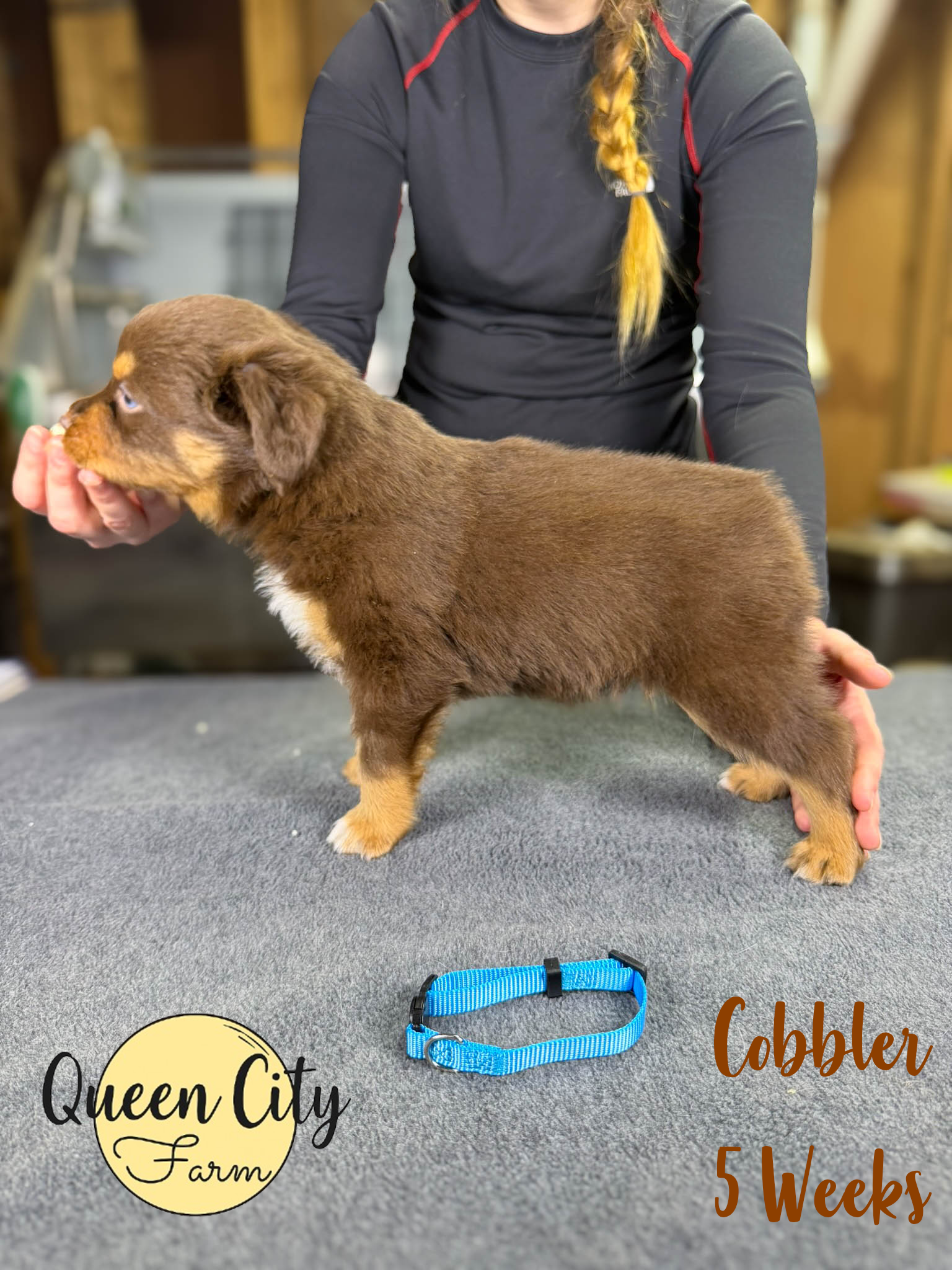 Cobbler is huge dog lover. She seeks out her siblings to play, and may need some time to adjust to a new environment, should she be alone. This seems to have improved with time. She has mild food motivation, but also could just be a picky eater. She is a super fun puppy, loves to chase you around and play bow. She is a vocal player!