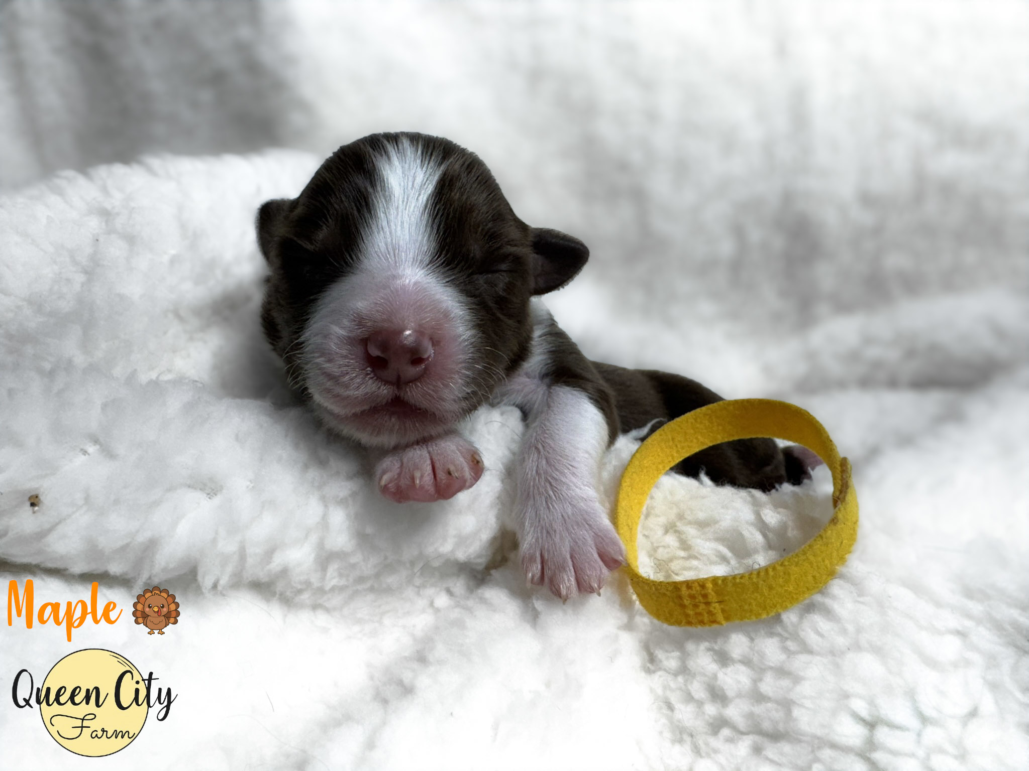 This feisty girl of the bunch. This girl is in everything, and is the first to check out the new things I introduced them to. She is confident and very very toy motivated. Her toy drive is higher than her food drive at this age, she loves loves loves to play tug. She is very animated when she plays! Growling and thrashing.