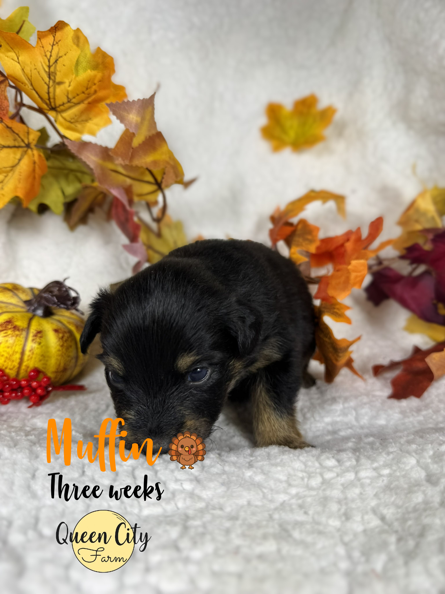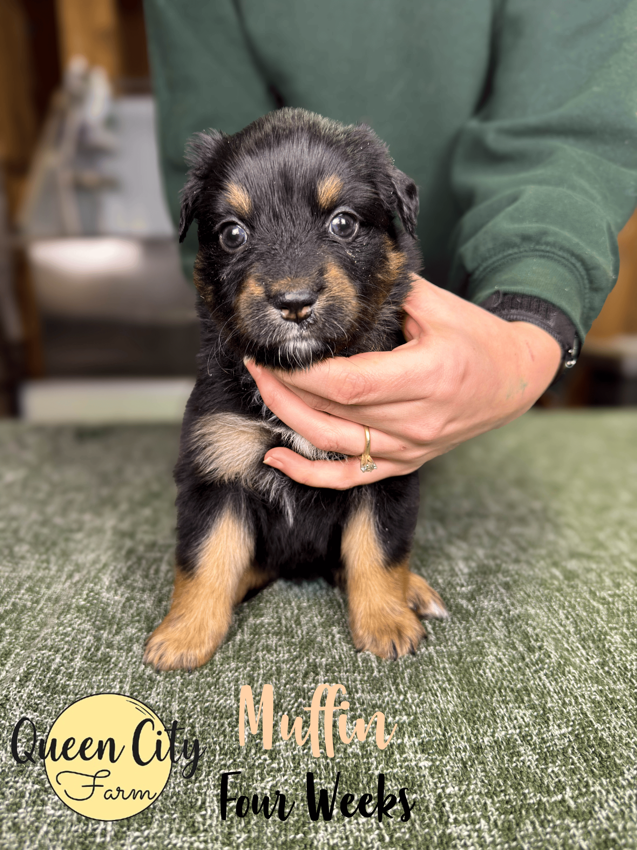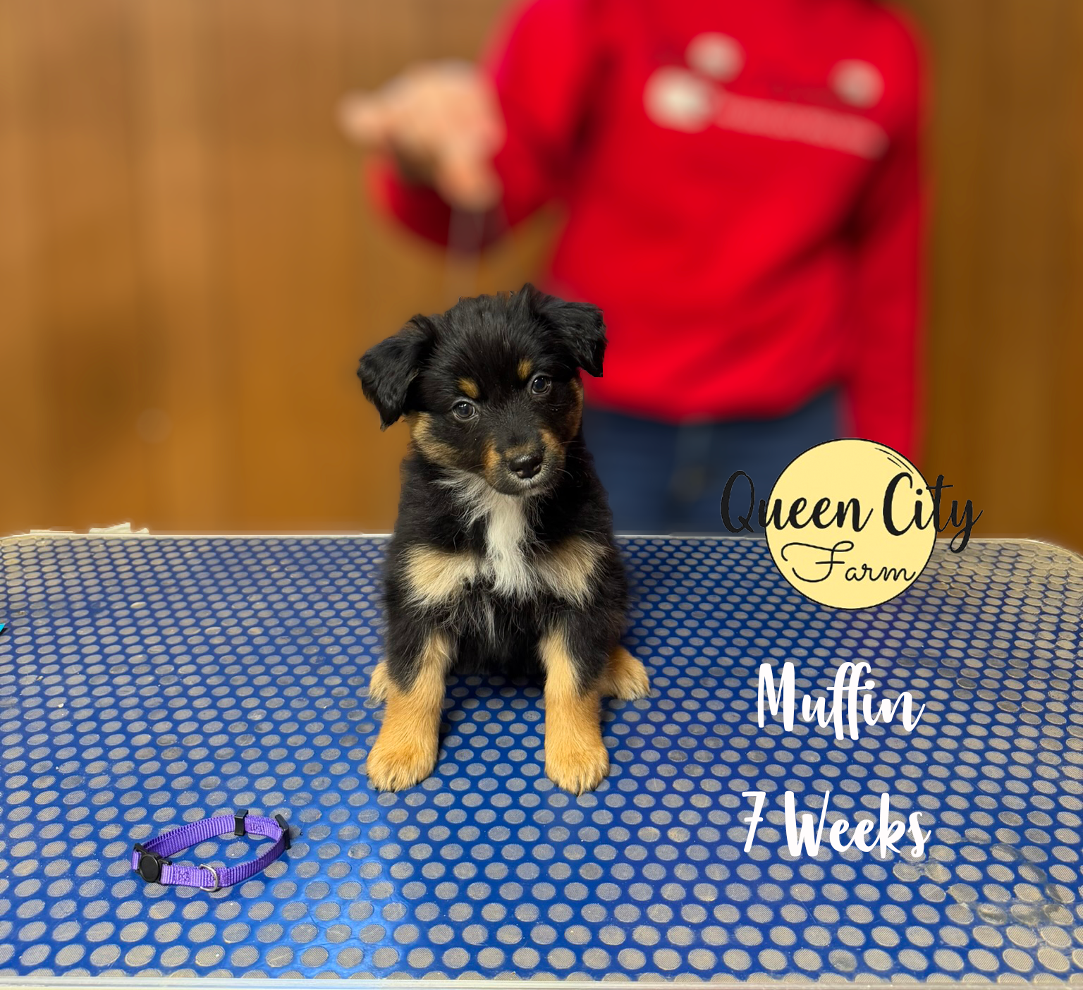 Muffin was the smallest puppy born, at only 6 oz at birth. She was a fighter from the very beginning and never let her smaller size stop her. She was the first to open her eyes and see the world! She has always been one of the sweetest girls, using her big brown eyes to get what she wants (how could you say no?!). She is very food motivated and moderately toy motivated, with a calm, thoughtful personality. She reminds me a lot of her half sister, Stella (who I own), who is calm, loving, and extremely people focused. Muffin scored mostly 4s and 5s, meaning she may be slightly more reserved or shy at first but warms up quickly. She is very sweet and approaches new situations with caution, preferring to observe before jumping right in. She is going to be a true “family dog” and very devoted to her people, with others being less important. This is actually breed standard, as Australian Shepherds should be aloof with strangers and never aggressive. Overall, Muffin is a sweet girl who would thrive with a family with older children, a lightly active person, or a couple looking for a very affectionate puppy.