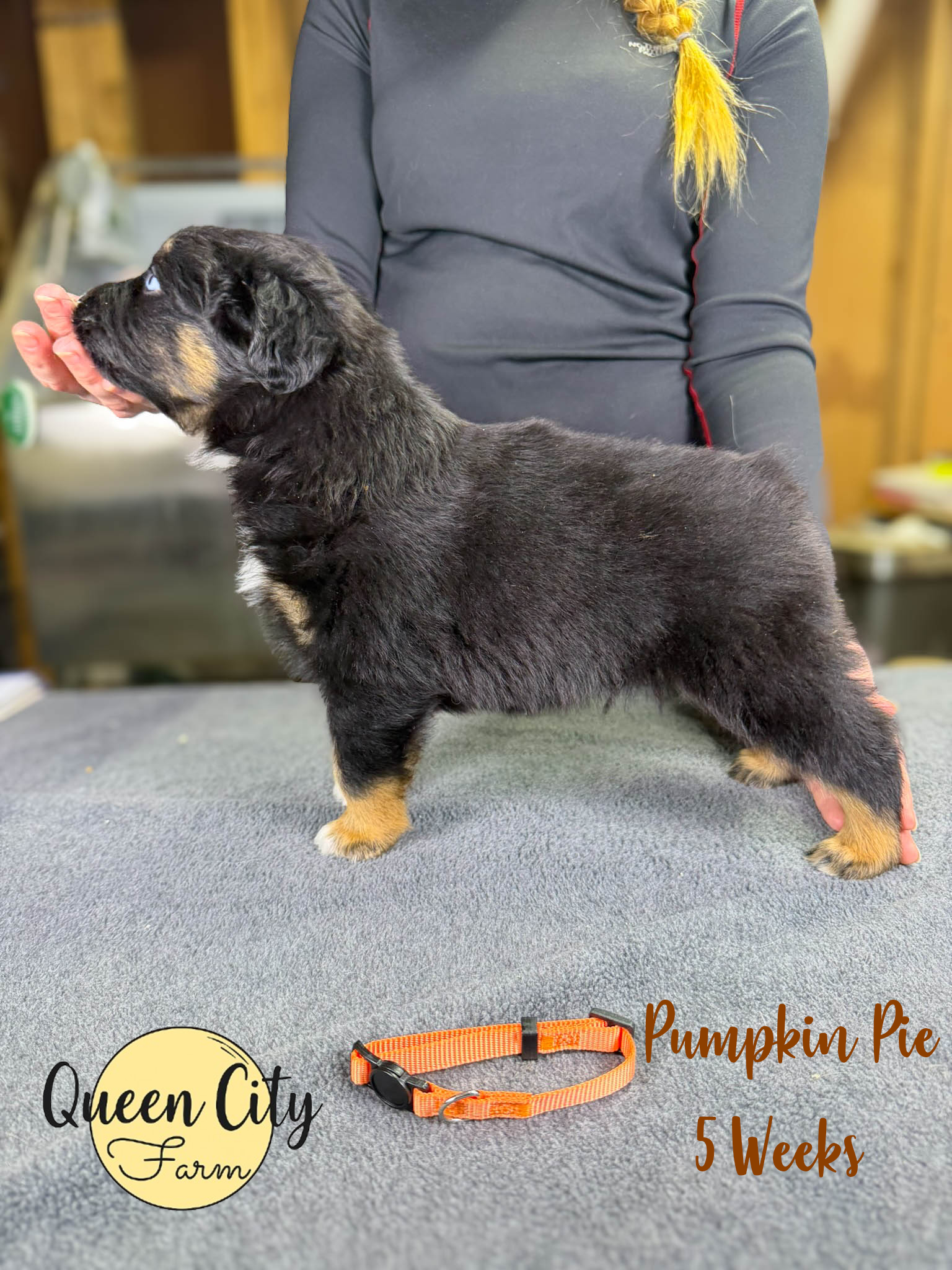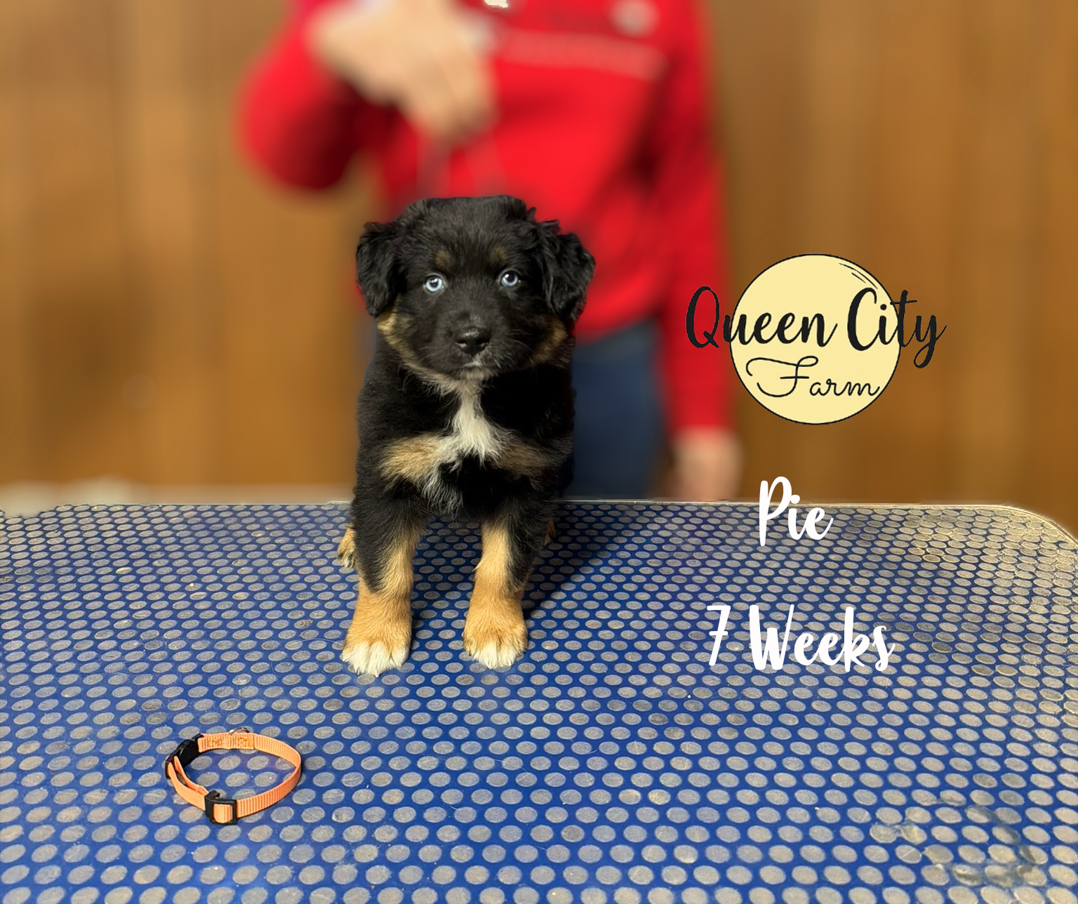 Pie has been the happiest, most friendly boy from the very beginning. He has truly never met a stranger and is always right in the middle of the chaos, soaking up everything happening around him. If there is something going on, Pie wants to be part of it and makes sure he is included in the fun. He absolutely loves people and seeks out interaction whenever he can. Whether it is adults, children, or someone new, Pie approaches everyone with the same joyful, open attitude. He is very food motivated and moderately toy motivated, which makes him eager to engage and a lot of fun to work with. He enjoys learning, participating, and being involved in whatever his people are doing. Pie approaches new environments and experiences with confidence and enthusiasm, rarely hesitating and always curious about what comes next. He brings a lot of joy and lighthearted energy into any space he is in and has a way of lifting the mood around him. He would thrive in a home that enjoys an outgoing, social puppy who wants to be part of everyday life and included in family activities. Overall, Pie is a cheerful, people loving boy with a big personality and an even bigger heart, and he is sure to bring happiness wherever he goes. He scored mostly 4s on his temperament testing, which places him firmly in the ideal family companion category. He is forgiving, adaptable, and confident, and he moved through the entire evaluation with ease. He needed no encouragement throughout the test and approached each new situation willingly and happily. His ability to recover quickly, stay engaged, and remain comfortable in new environments makes him an excellent choice for a family looking for a well balanced, easygoing puppy.